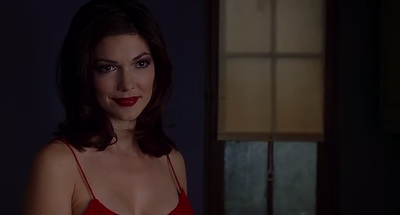 Camilla doesn't respond to her surroundings or situation. She doesn't appear to have walked in or climbed in through a window. She doesn't react to Diane's demented gaze, she just smiles beautifically. She doesn’t fit her surroundings at all - she’s an ousider, a hallucination, a delusion. Diane is fantasising that it was Camilla, not the neighbour, who knocked on the door and came into her flat. Diane is overcome.