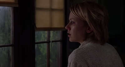 As she stands at the counter we move round to her other side and zoom slowly closer and closer in to her head. Then something strange happens. There's no sound or movement or other clue, but Diane hears something.